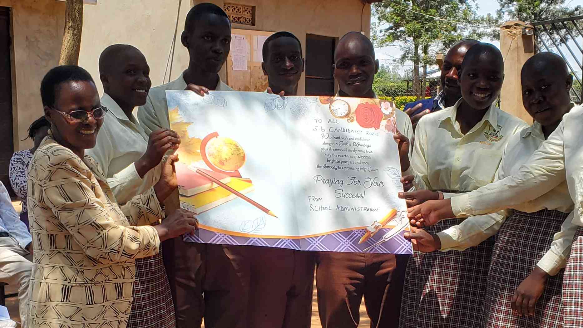 At Rubongi Army SS, the briefing day started with organizing the venue and transporting numerous success cards from the academics office to the event location. A few speeches were delivered by the school administration and the chief invigilator, though the students appeared particularly interested in the success cards before them.