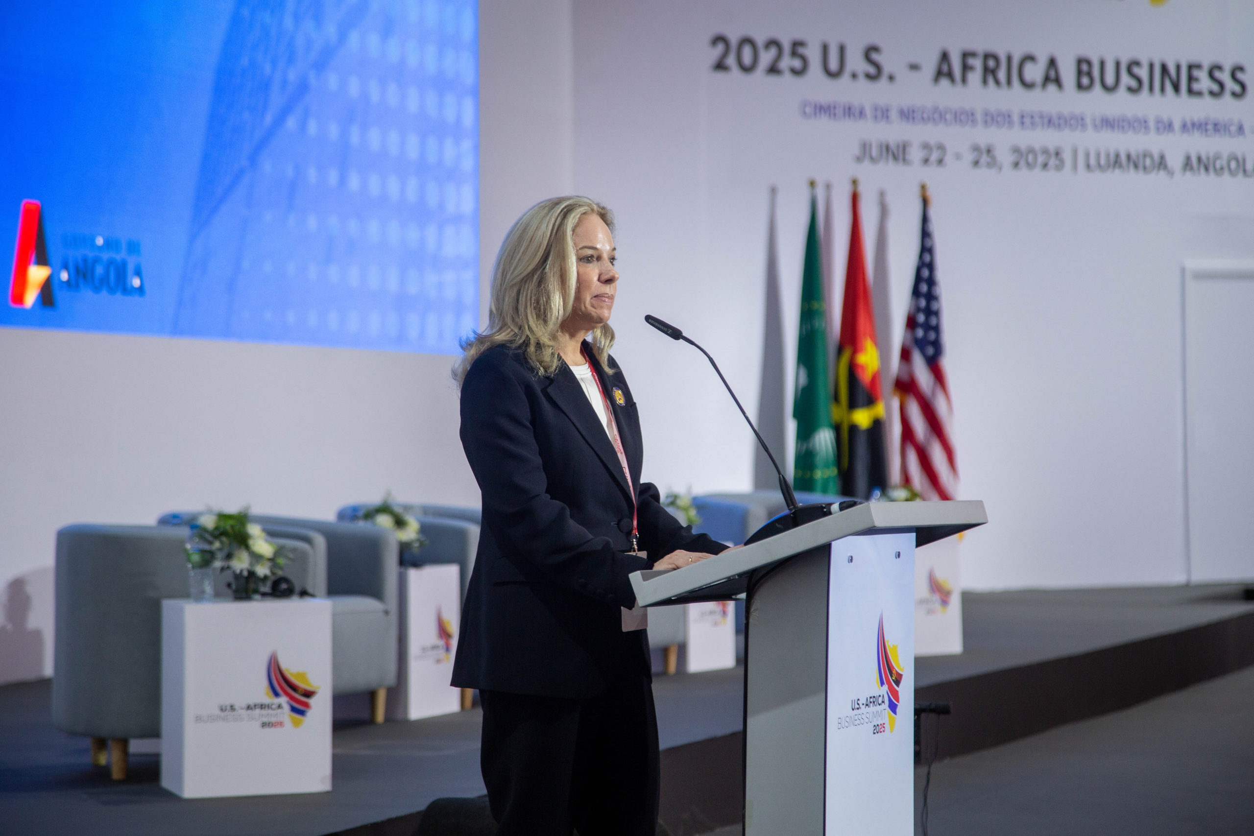 Luisa Ortega, Coca-Cola Africa President, speaking at the US-Africa Business Summit, in Luanda.