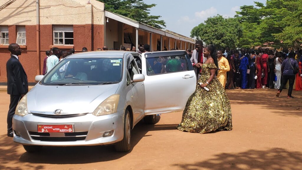 The Prom Party President, Muwanguzi Armstrong of Form Six, and his First Lady, Achwo Getrude Linda, also of Form Six, made their entrance with a group of cars accompanying them. This was a rarity for the school, as the last time one of the Prom Presidents arrived in a car was in 2020, when Mr. Waya Jamiru did so.