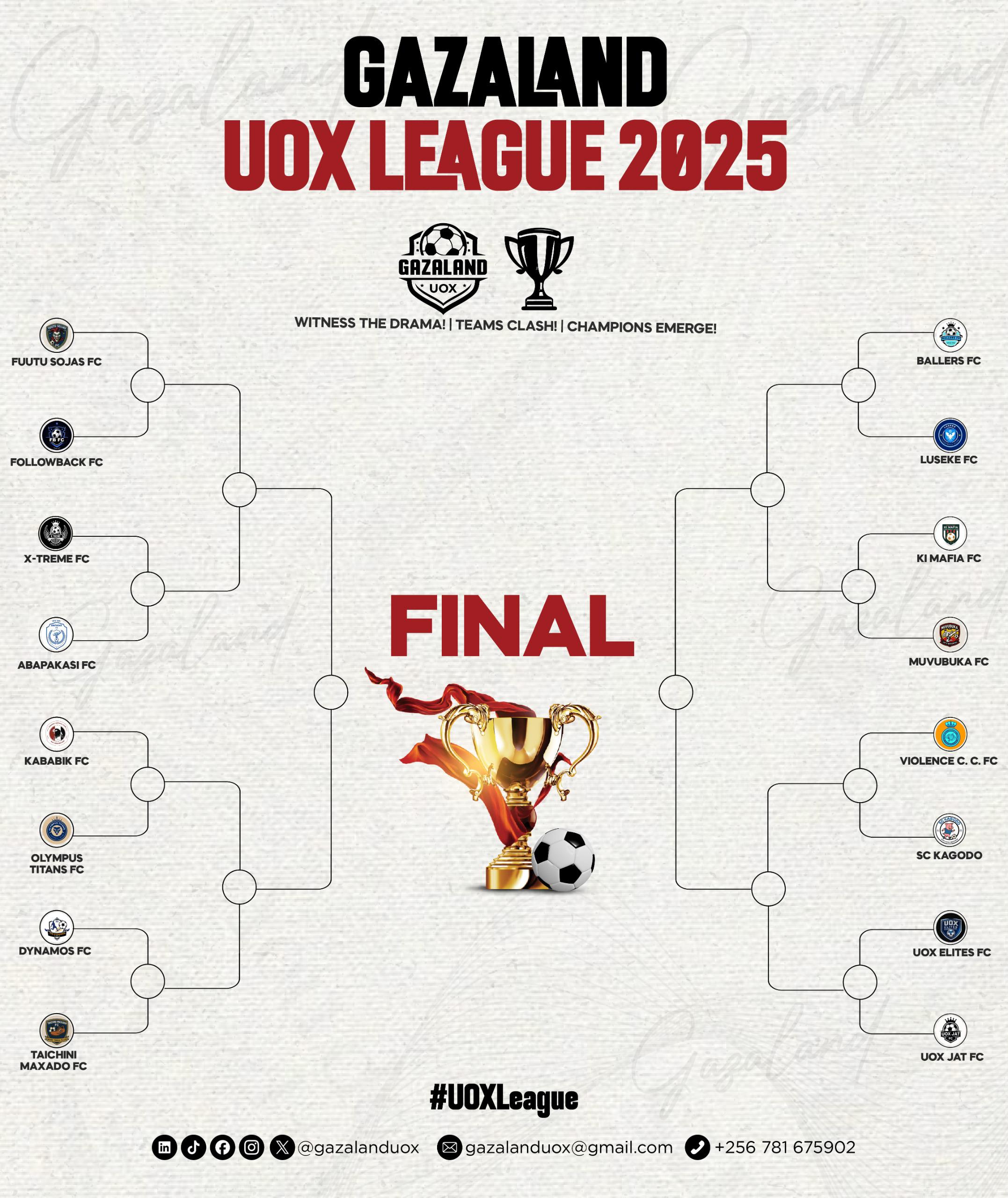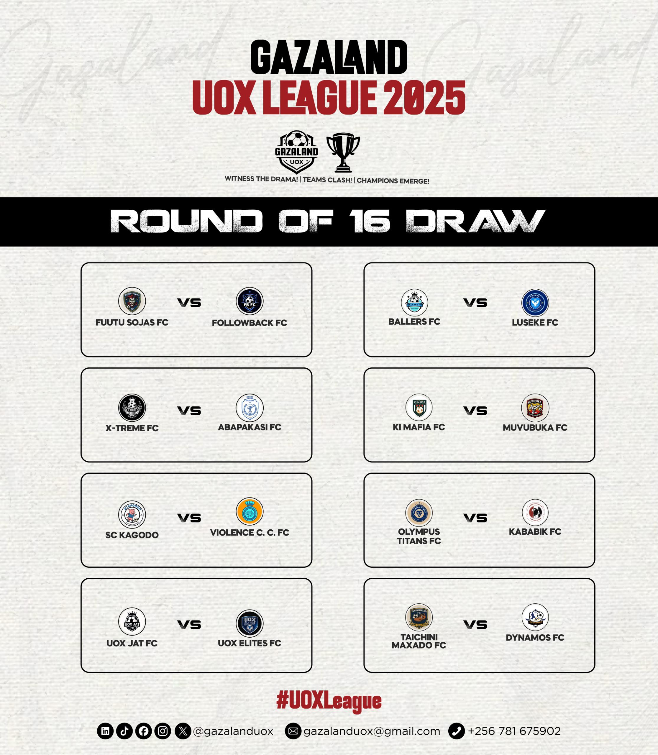 With 16 teams set to collide this Sunday, the Gazaland UOX League enters its most thrilling stage yet. If the group stage was a test of strategy and depth, the knockouts will be a test of nerves and heart.