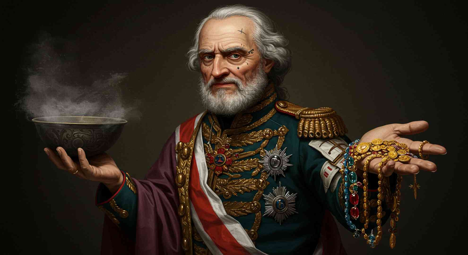 A key theme here is propaganda: he writes books glorifying the land as one of beauty and freedom, creating a national myth that mesmerizes the people. The poem critically notes that “None looked deep into his intents,” highlighting the populace’s complicity through willful ignorance, allowing a destructive system to take root.